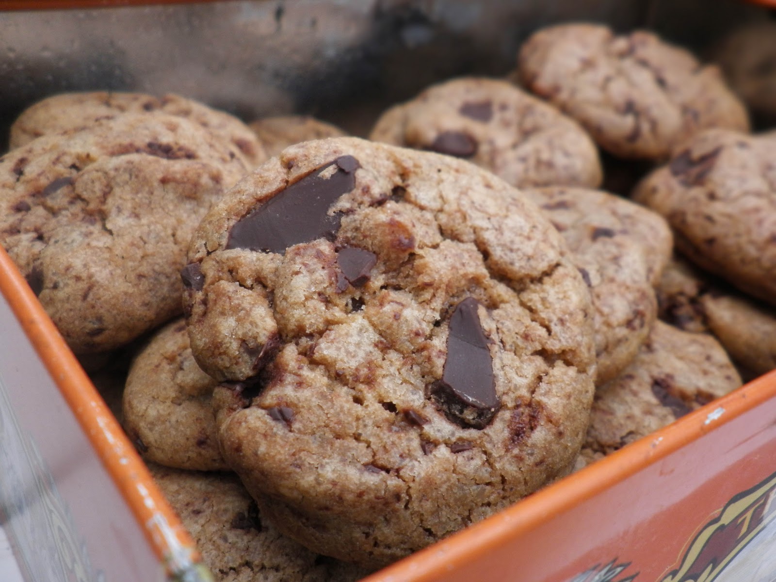 Smält smör och låt svalna. Vispa smör och alla sockersorter poröst. Vispa i ägg och äggula. Blanda de torra ingredienserna och rör ner. Hacka chokladen och blanda i. Forma en deg, plasta in och lägg i kylskåpet ett dygn (man kan såklart göra kakorna samma dag om man inte orkar vänta men de ska tydligen bli mer ultimata om degen får vila). Skär degen i lagom stora bitar (enligt orginalreceptet ska det bli 24 kakor, jag gjorde drygt 50 st..), forma ev. till boll och lägg på plåten. Eftersom kakorna flyter ut ganska mycket är det bra om det inte ligger för tätt.