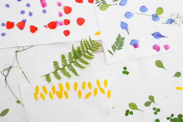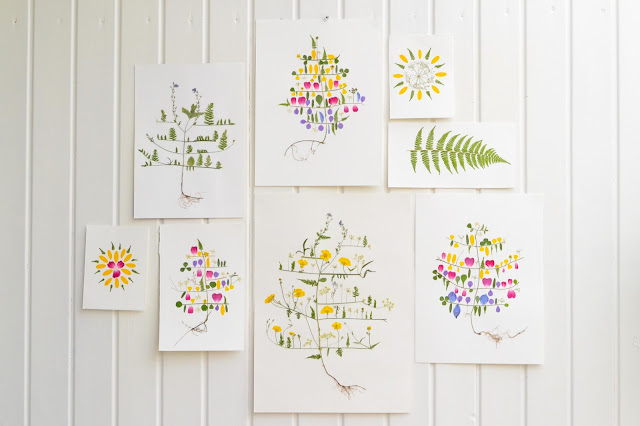 Sen sprider man ut bladen mellan hushållspapper och lägger i en stor tung bok med en tyngd på. Efter några dagar är de torra och då kan man börja montera.