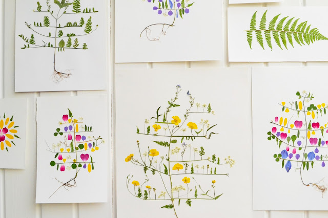 Först samlar man ihop ett gäng blommor som man tycker är snygga och som går att torka. Pelargonen verkade t.ex. inte gå så bra att torka så den rekommenderar jag inte.