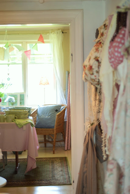På övervåningen fanns massor av fina inredningsgrejer. Ett varningens finger bör dock höjas för shabby chic-allergiker! Det fanns en hel del låtsasgamla, vitmålade och fejknötta saker…