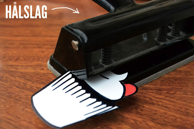 Kanske vill man ha ett hål i plasten för att den ska kunna hänga. Det gör man lätt med en hålslagare, hålet bör inte vara mindre än så eftersom plasten krymper ungefär en tredjedel. Sen är det alltså ugnen som gäller, 160 grader. Efter bara en liten stund börjar plasten skrynka ihop sig och man tror att allt är förstört men när den börjar veckla ut sig igen, blir platt och ligger still, då tar man ut dem. Man ska direkt (de svalnar fort) ställa en tyngd på plastbitarna för att de ska bli helt platta.